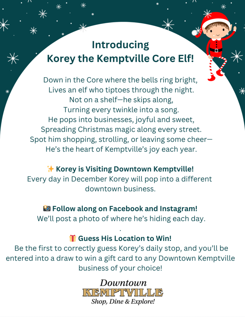 Korey is spreading holiday cheer all over Downtown Kemptville this December!